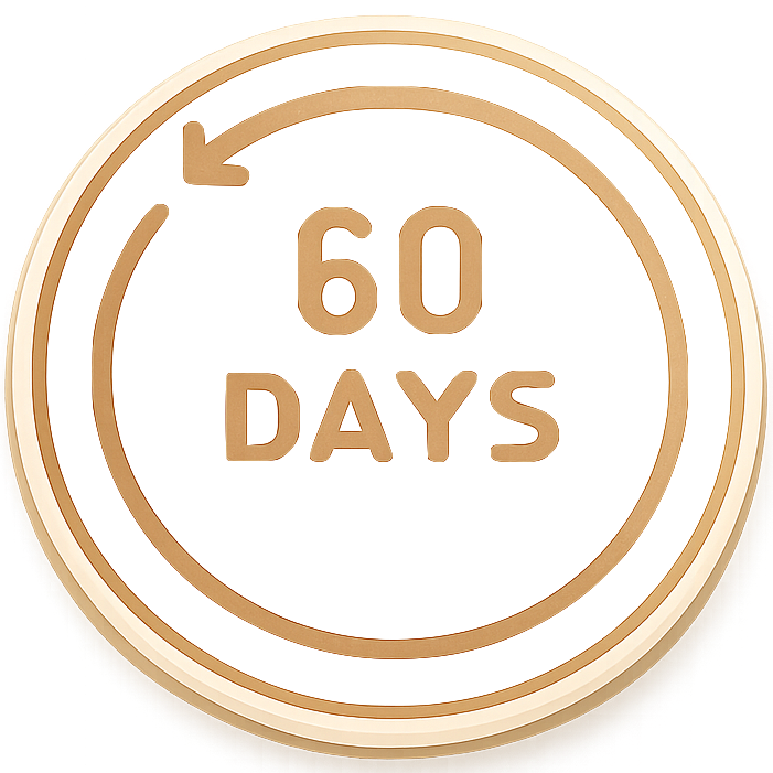 Nous offrons une garantie satisfait ou remboursé de 60 jours, sans conditions.