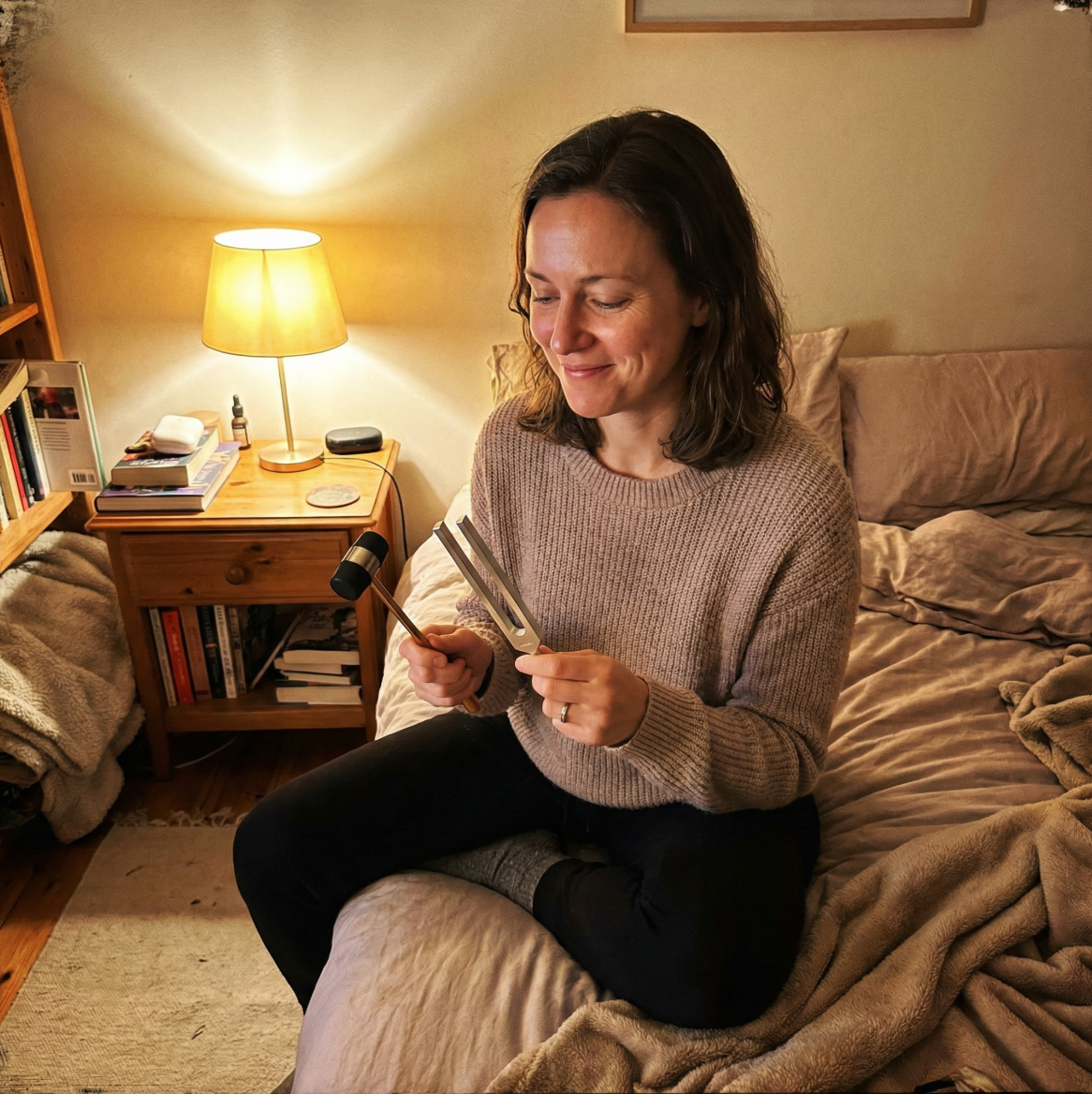 Contrairement aux sons numériques, les diapasons produisent une fréquence mécanique pure, sans interférence électronique. On peut aussi les appliquer directement sur des zones précises du corps, ce qui favorise une sensation de relâchement localisé que le son seul ne permet pas toujours d’atteindre.